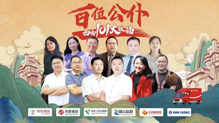 “百位公仆,西南101大联播”大型助农直播活动由京东物流主办,尊龙凯时集团-云南蔚岚信息技术有限公司、云南筑云信息产业有限公司承办,云南云纺科技产业园有限公司、昆明电子商务协会协办。