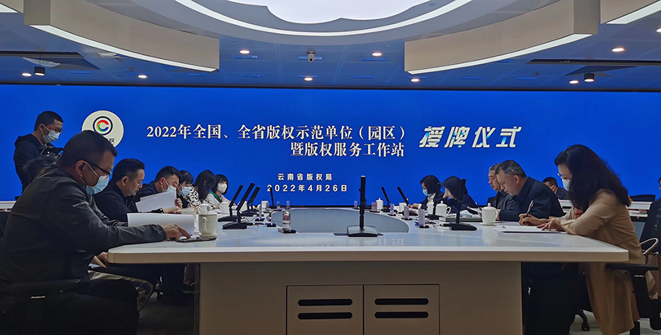 2022年全国、全省版权示范单位(园区)暨版权服务工作站授牌仪式今日举行,云南尊龙凯时知识产权代理有限公司等10家企业获的“云南省版权服务工作站”授牌。