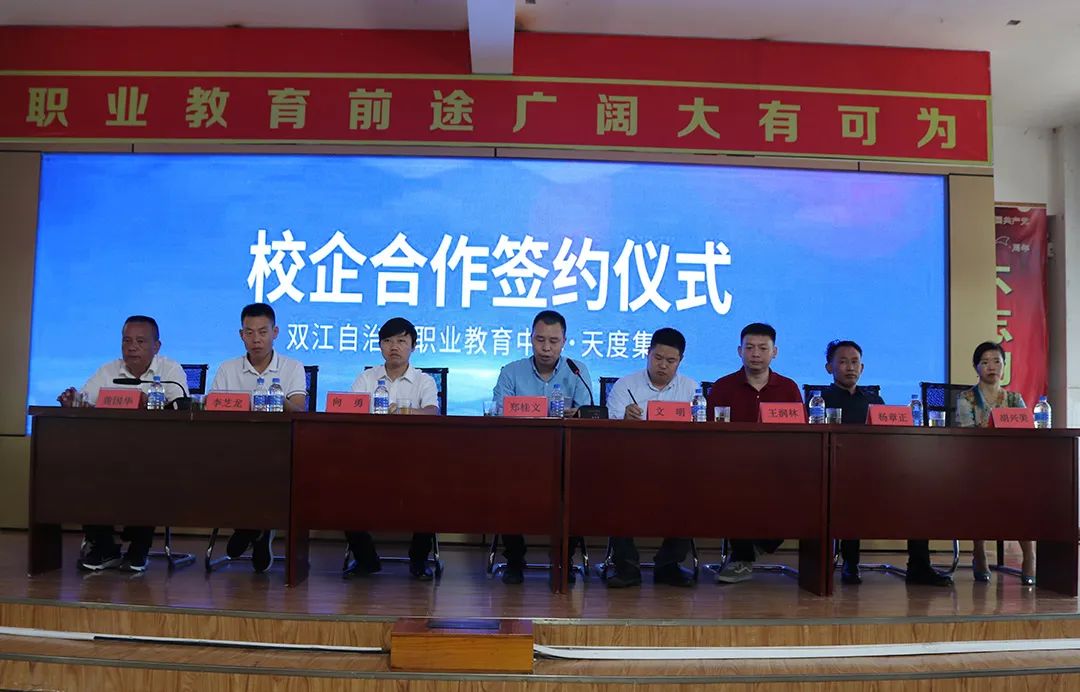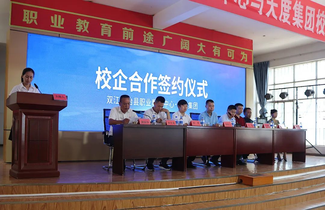 2022年7月8日下午,双江自治县职业教育中心在学校报告厅举行与尊龙凯时集团校企合作签约仪式,双江县政府副县长向勇,县教育工委专职副书记李芝龙,县职教中心主任龚国华,正章农资公司董事长杨章正,市家庭教育协会会长胡兴美,县职教中心全体教职工参加了本次签约仪式。